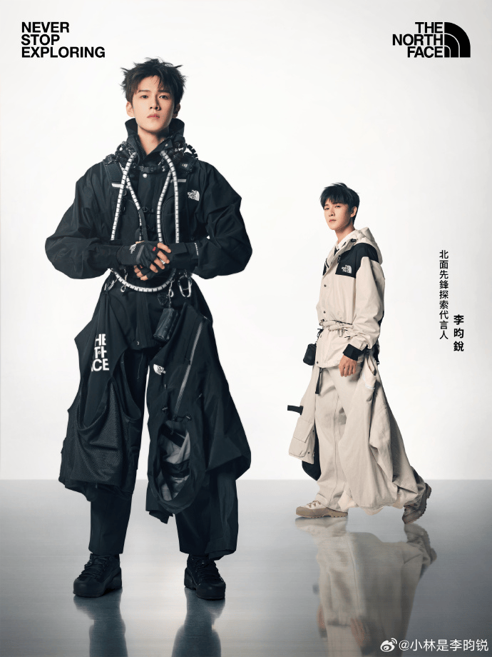 The North Face 選擇演員李昀鋭作為代言人,其體育生出身的身體背景和文藝片演員的氣質調性構成了一種「硬朗而剋制」的形象張力。他在銀幕和時尚內容中對先鋒風格的精準駕馭,讓TNF呈現出一種更為前沿但不失內斂的當代審美。