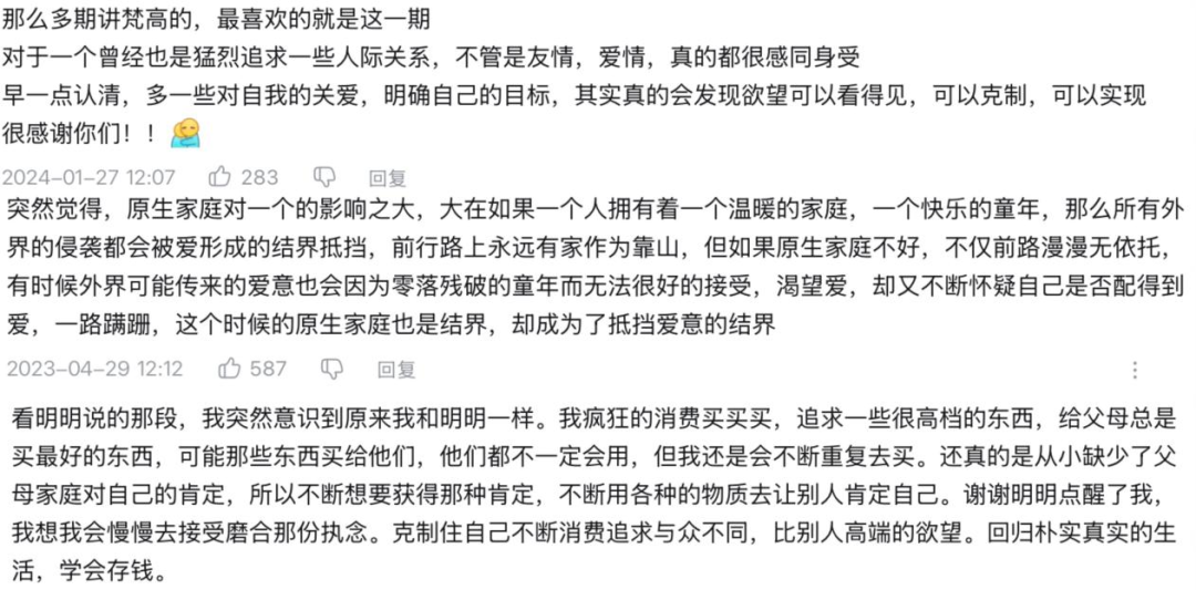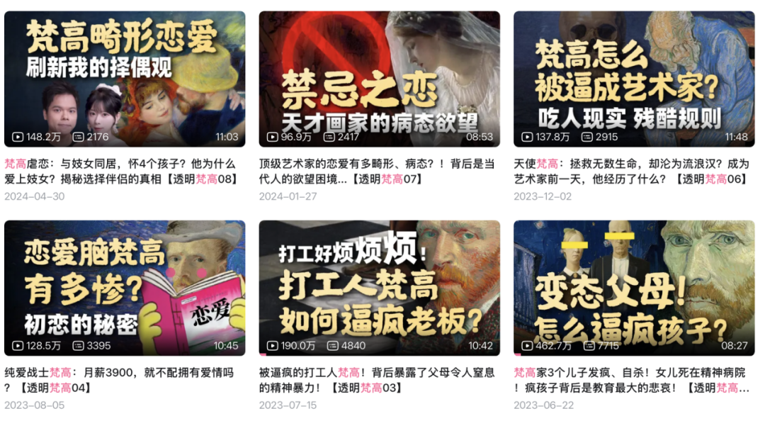 除此之外,他們還會從許多社會性角度進行人文科普,讓觀眾更有共鳴。他們曾用8期視頻,對藝術家梵高進行了各個維度的解讀: