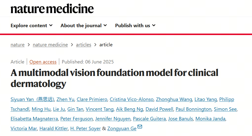 近日,由鷹瞳Airdoc-莫納什聯合實驗室公佈了一項重要成果:由AI驅動的算法工具PanDerm。據稱,該模型能夠 通過多種醫學圖像數據,在黑色素瘤和其他皮膚病檢測中展現出更高的診斷準確率。同時,該研究成果已正式發表在國際頂級醫學期刊《Nature Medicine》。業內普遍認為 ,此舉有望推動皮膚病早期篩查的普及與標準化。