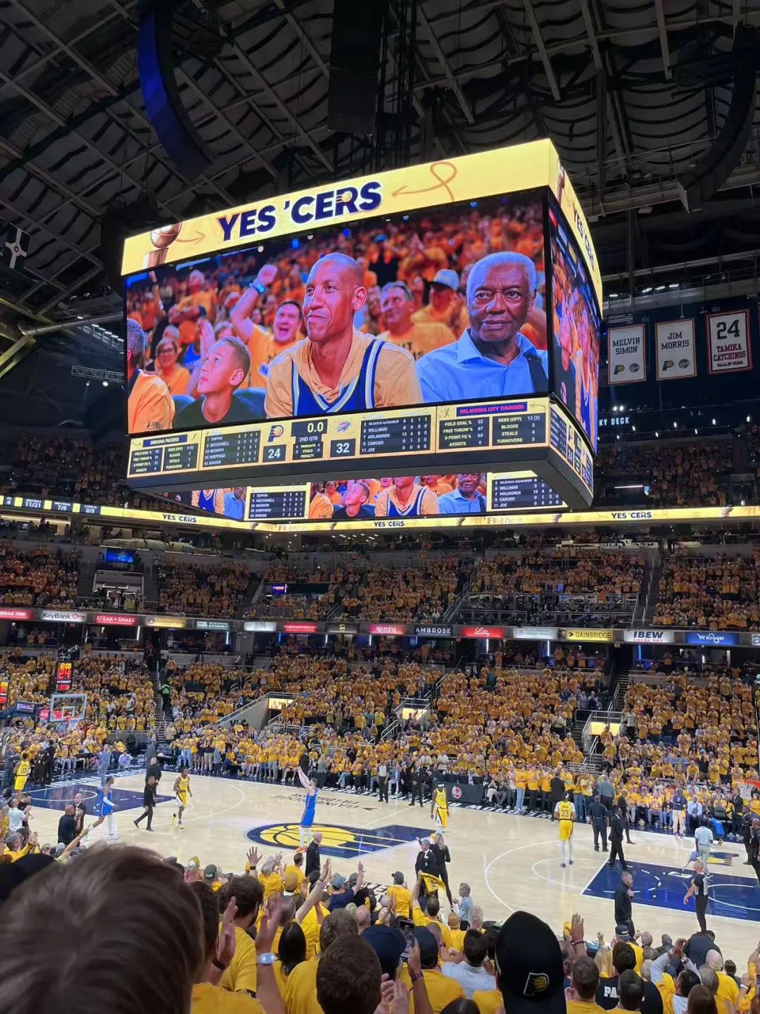 如此步行者贏下25年來第一個總決賽主場。雷吉·米勒和奧斯卡·羅伯遜在場邊一定心滿意足。