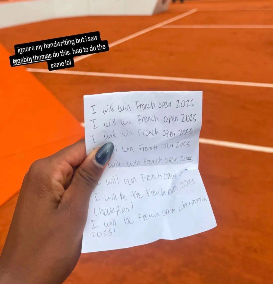 當然,所謂「鬆弛」並不是對一切都毫不在意**,**否則高芙也不會連寫8遍「I will win French Open 2025」,給自己積極心理暗示。