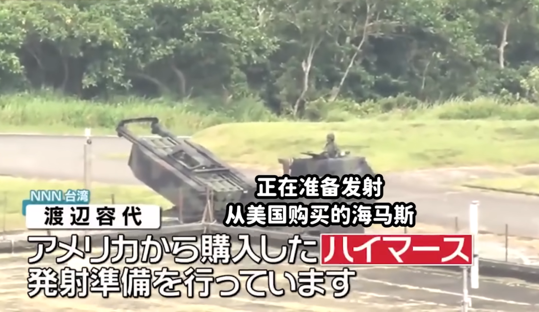 視頻開頭,日本記者從台北搭乘軍機到達台灣南部,換乘大巴車後又被蒙上車玻璃神秘轉運到了一個軍事基地,結果到地方一看,正是台軍的美製“海馬斯”火箭炮試射。