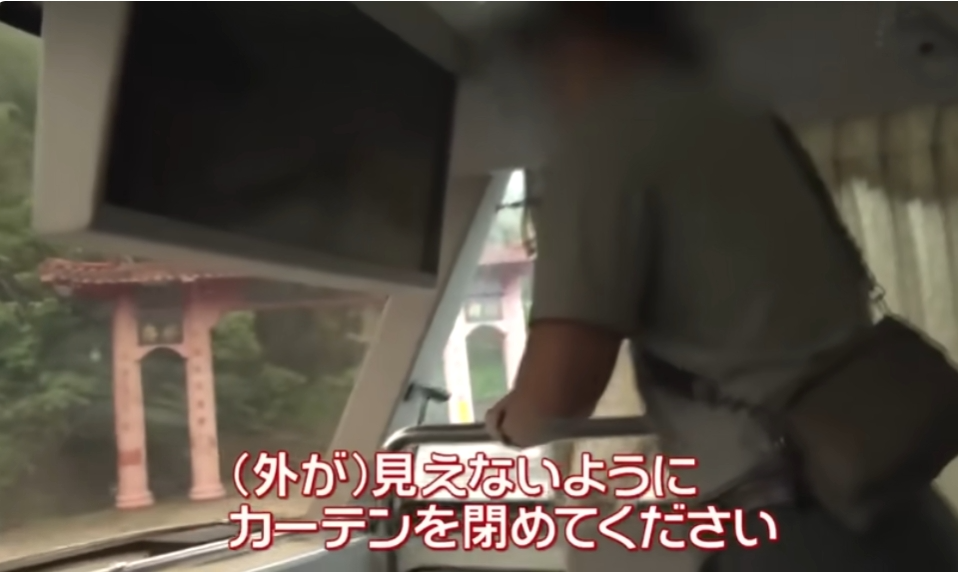 ▲大巴車被要求關閉窗簾時,日本記者曾拍到一個紅色牌坊。