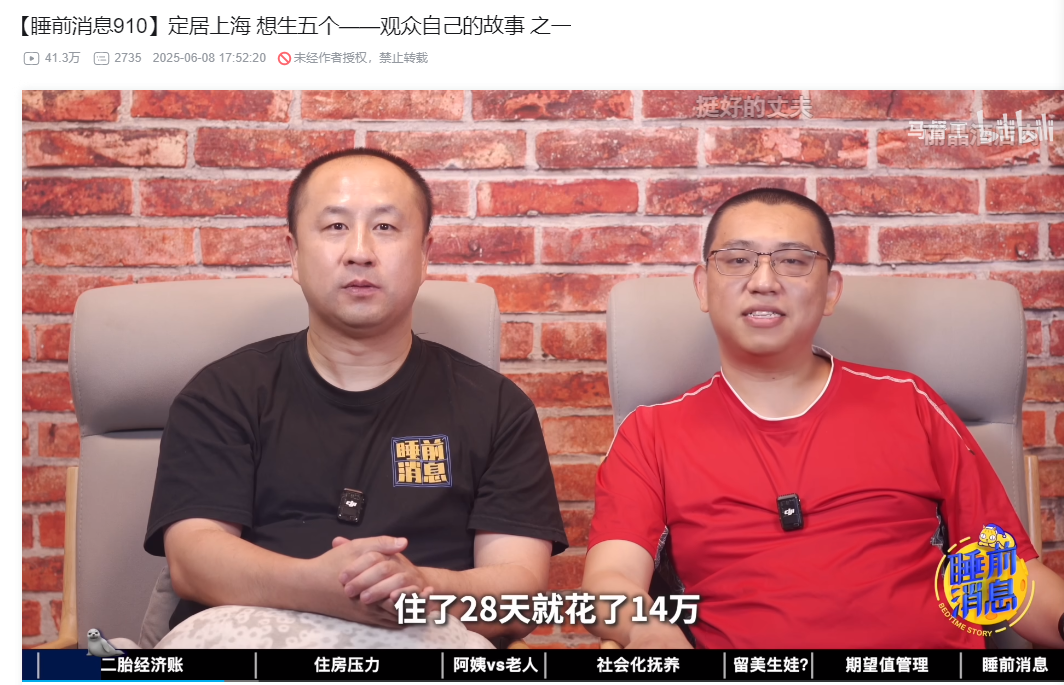 最新一期睡前消息節目,討論一個清華畢業留學美帝然後回上海的社會精英二胎經歷,他第二個娃,月子中心一個月花了14萬,就光一個月子中心啊,14萬,這裏就不算前面私立醫院全套產檢什麼的,後面月嫂什麼的…