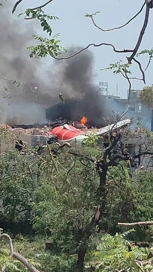 6月12日,新華社援引印度當地電視台報道,一架飛機在印度古傑拉特邦艾哈邁達巴德機場墜毀,機場上空冒起濃煙。