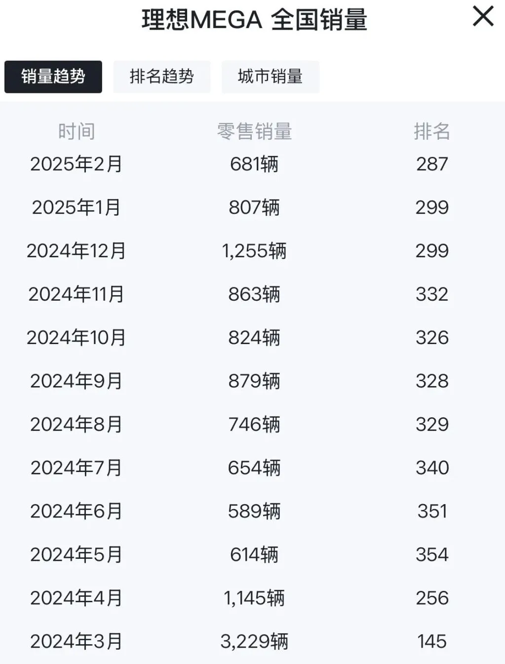 因此,如果理想MEGA能像當初的理想ONE一樣一炮走紅,那麼理想汽車在高端 MPV 市場中便能站穩腳跟,就能吸引更多高淨值人士的關注和認可,為品牌的長遠發展打下堅實的地基。只是,理想的豐滿沒有敵得過現實的骨感罷了。