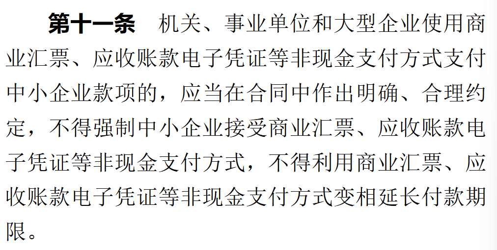 這次 《 條例 》 的第十一條,明明白白寫了,不得強制中小企業接受商業匯票。