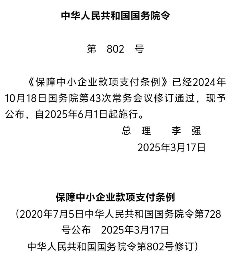 早在今年 3 月份,國內修訂通過了一個 《 保障中小企業款項支付條例 》(以下簡稱《條例》),這個條例從 6 月 1 日起施行。