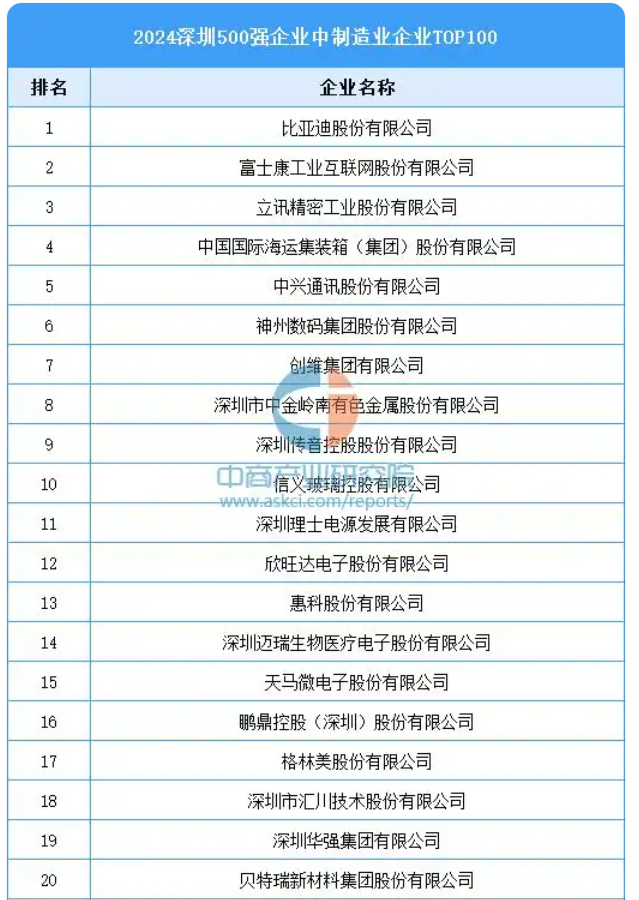 如果看深圳的2024年製造業100強,那消費電子產業鏈相關企業非常多,下圖來自中商產業研究院(華為不在其中,可能沒有參選),