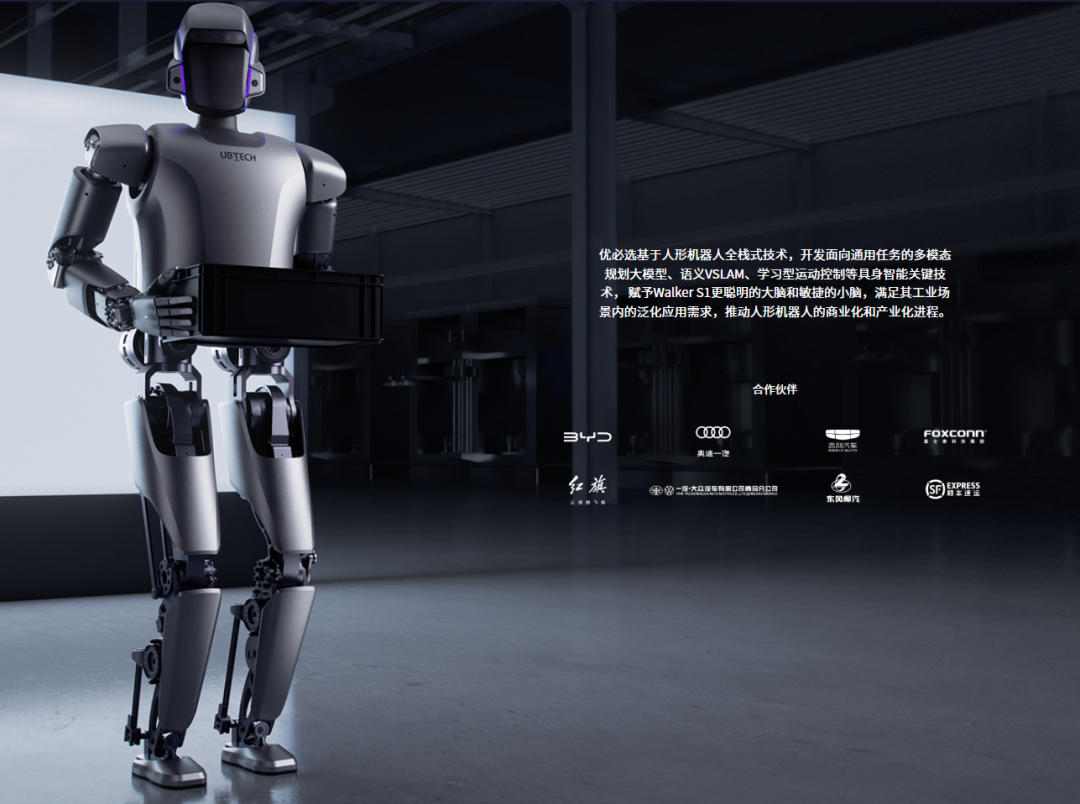 下圖是優必選的Walker S1人形機器人,在全球對工廠交付最多的人形機器人,客户包括比亞迪,紅旗,吉利,奧迪一汽,東風陝汽,順豐,富士康等。