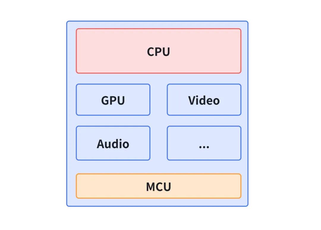 不同於雙芯片架構,混合架構SoC在模式切換時不用重新點亮芯片,只需要開關除了MCU以外的SoC模塊(CPU、GPU以及音視頻編解碼單元等)就可以了。