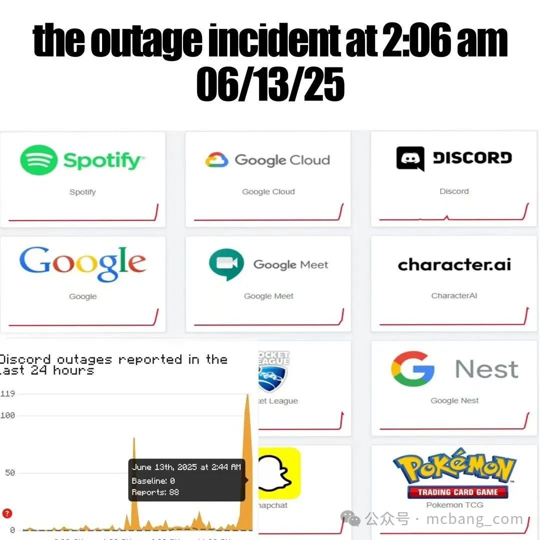 - 2025年6月:谷歌雲全球宕機,影響多項互聯網服務,宕機始於太平洋時間上午10:51,工程師正在努力修復,但尚未公佈預計恢復時間。