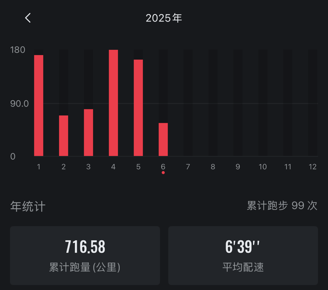 下圖是我的跑步數據,去年跑了一千二,今年堅持低心率慢跑,二三月份事情太多,又中了一次流感,跑量較少,其他幾個月還湊合,基本上能做到隔天跑個八公里。