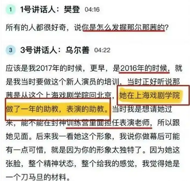 但上戲卻表示,從來沒有聘任那爾那茜當助教,當時接受中國新聞週刊採訪的工作人員表示,那爾那茜當時只是考入上戲的一個委培生。