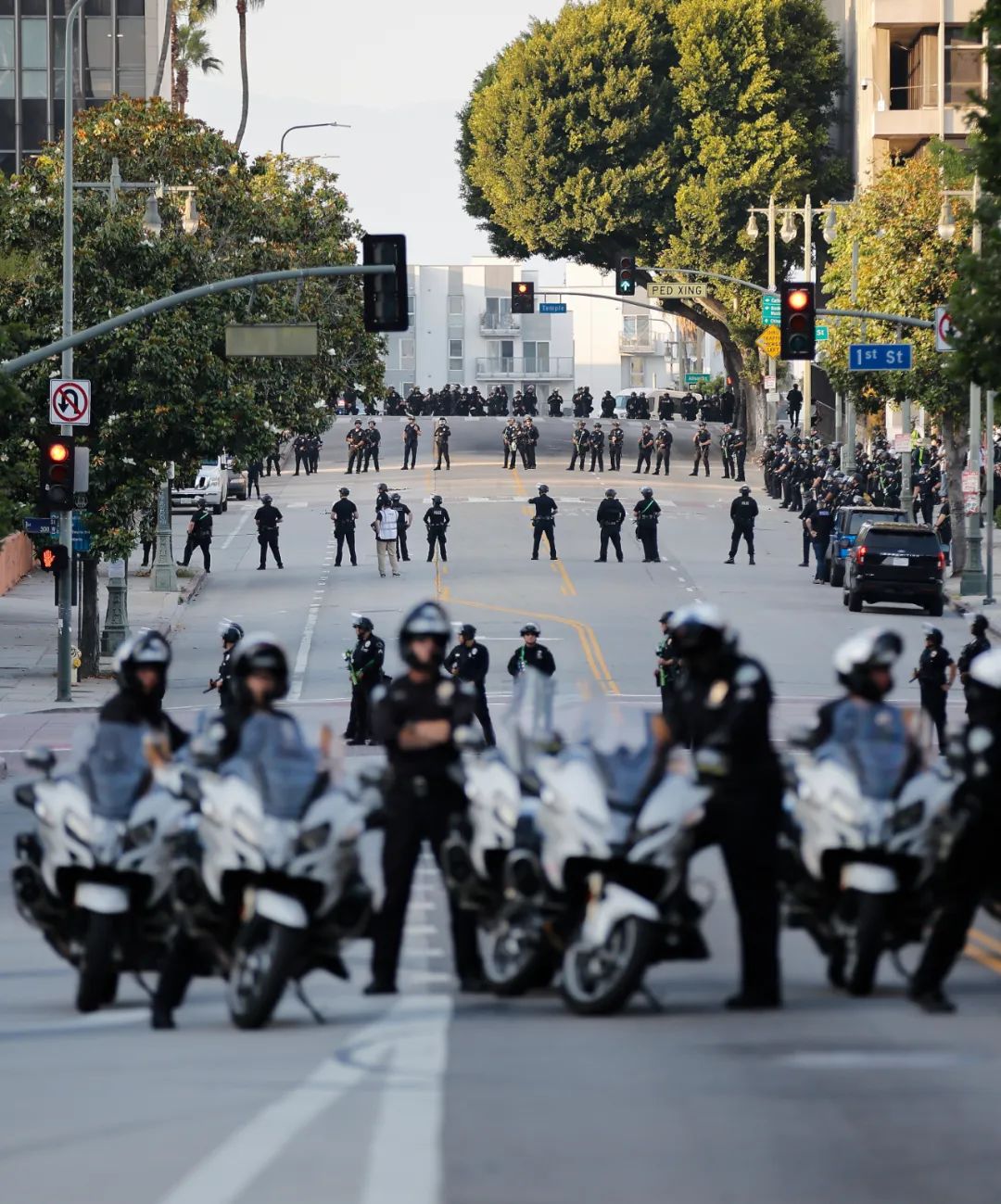 騷亂髮生後,聯邦政府一再構建“執法危機”等緊急敍事,如將零星暴力事件放大為“城市失控”,將抗議者定性為所謂“外敵入侵”。即使洛杉磯地方警力多次聲明局勢可控,這些浮誇式渲染仍為軍事幹預提供了輿論基礎。