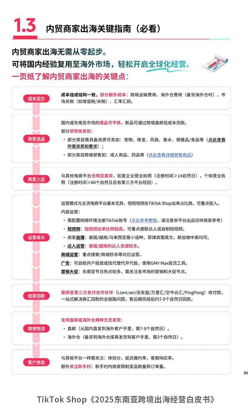 對於長期深耕國內市場的內貿商家而言,轉型的最大障礙往往不是產品競爭力,而是對跨境鏈路複雜性的天然畏懼。TikTok Shop東南亞跨境電商推出“飛輪計劃Plus”精準拆解了這道難題,《2025東南亞跨境出海經營白皮書》更是提供一站式成長攻略,從簡化入駐流程到提供跨境運營指導,幫助商家邁過 “跨出去” 的第一步。