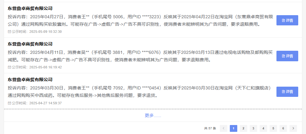 例如仁和塑醫師控脂減肥茶,根據天眼查及全國12315消費投訴信息公示平台信息,其背後的東營鼎卓商貿有限公司,在被列入高風險被執行人的同時,旗下產品也因虛假廣告、售後不當等問題遭到不少消費者投訴。