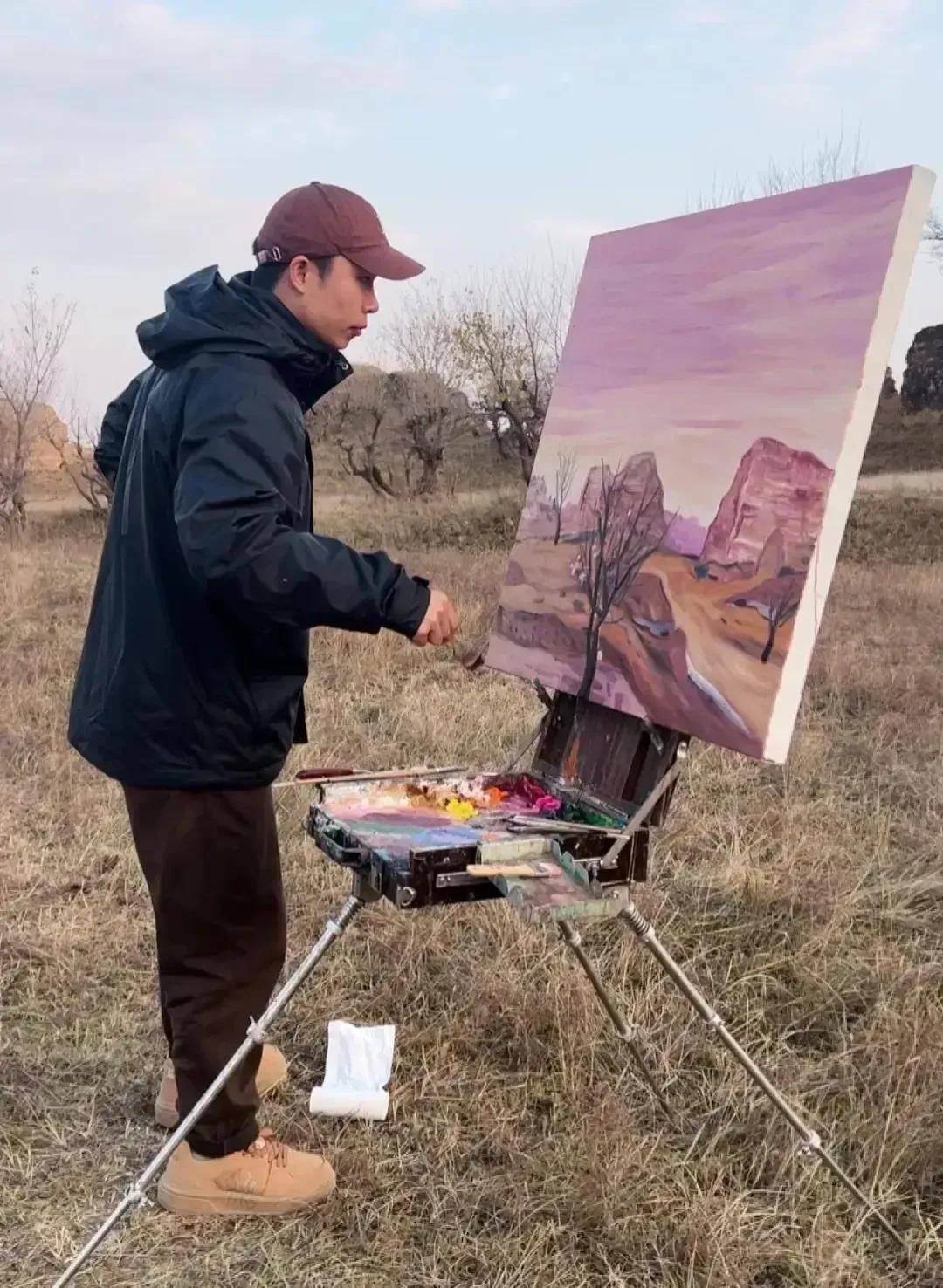 後來他成為一名演員,即便演出任務繁重,他對繪畫的熱愛也從未有過絲毫消減。只要稍有閒暇,便一頭扎進畫筆與畫布交織的世界裏,盡情揮灑自己的才情,讓靈感在指尖流淌。時常廢寢忘食的他,更是創造性地將“舞台表演”的藝術精髓融入到自己的繪畫創作中。他深信藝術的本質是相通的,舞台表演中所藴含的節奏韻律,在他畫裏有着靈動的呈現與精妙的映射。畫面元素佈局疏密有致,充滿了音樂般的節奏感與秩序感;色彩的漸變過渡仿若舞台燈光的夢幻變換,巧妙地引導着觀者的視線,營造出層次豐富、意藴悠長的情感氛圍。這也使得他的作品猶如一部精彩的、能讓人上癮的短劇,讓觀者沉浸其中,流連忘返。