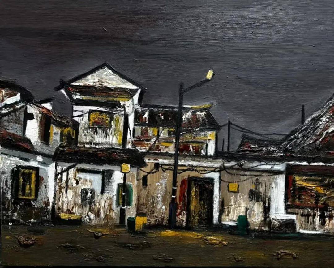 在陳允光最新的作品中,多張畫作取景於他夢裏夢外都在眷戀着的蘇北。這些作品並非對實景的複製,而是他憑藉腦海中刻骨銘心的記憶碎片創作而成,這種創作方式與表現主義所強調的主觀感受理念不謀而合,為作品注入了來自內心深處的強大情感力量。與他早期傾向於運用“黑與白”主色調、表達對家鄉喜愛的《蘇北記憶》系列不同,隨着成長與環境變化,他開啓了色彩搭配的探索之旅。此次新創作的作品裏,白色在畫面中佔據一定比例,營造出一種潔白而深邃的藝術意境,引人遐想。陳允光跳出傳統寫實風景油畫的框架,側重於通過藝術表達自己內在情感與主觀感受。正如德國表現主義畫家們所倡導的觀念:“藝術不是對可見之物的簡單再現,而是對不可見之物的大膽創造。”他正朝着“構建一個全新的、充滿想象力的藝術空間”前進,傳遞一種超脱現實的空靈精神意境,以實際行動踐行着表現主義的藝術理念。