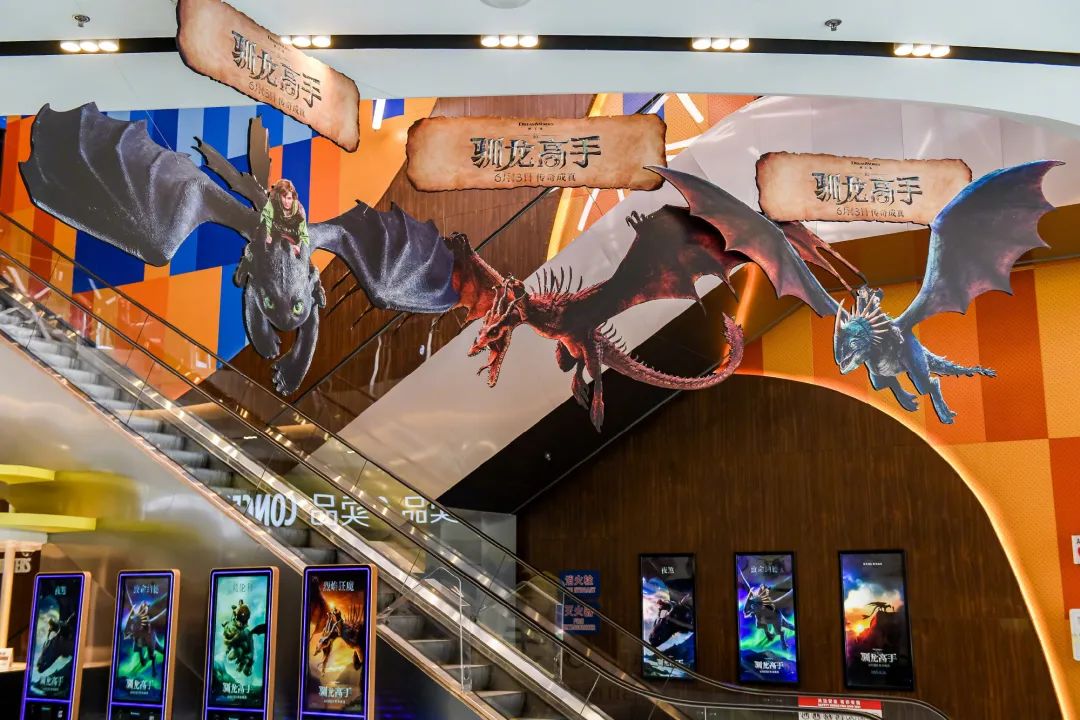 這種場景化的佈置,正是IP聯動的初級體現——通過視覺元素的強化,將電影中的虛擬世界具象化,讓觀眾在踏入園區的那一刻起,就沉浸在《馴龍高手》的世界觀中。