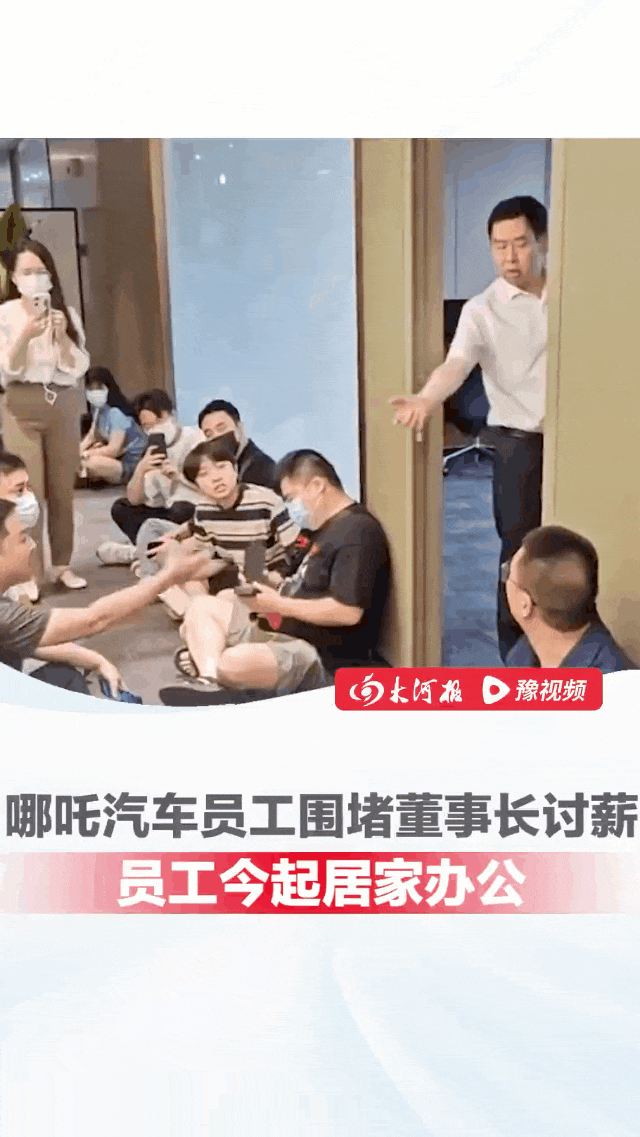 6月12日,哪吒汽車內部宣佈,員工自當日起居家辦公,辦公室門禁已經失效,員工搬離個人物品需由行政部門向屬地相關部門和物業報備。
