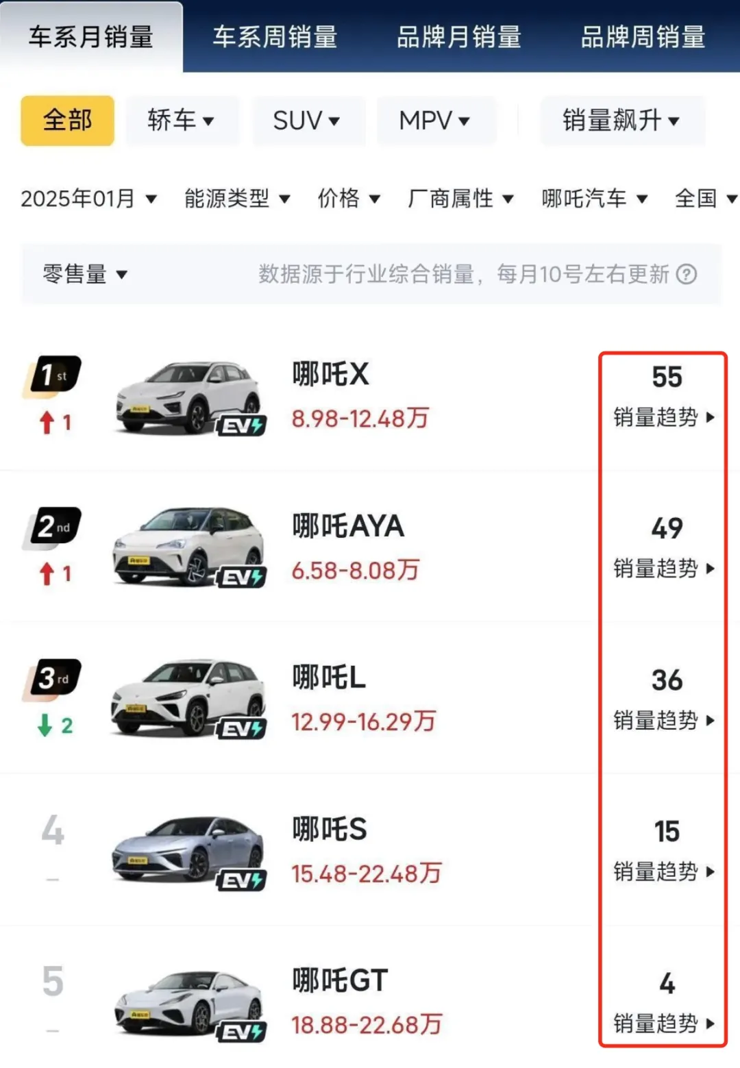 同時,內部管理混亂、股東紛爭等問題,也讓其危機加劇,最終銷量下滑,陷入“高不成低不就”的境遇,2025年1月其國內零售量僅159輛。