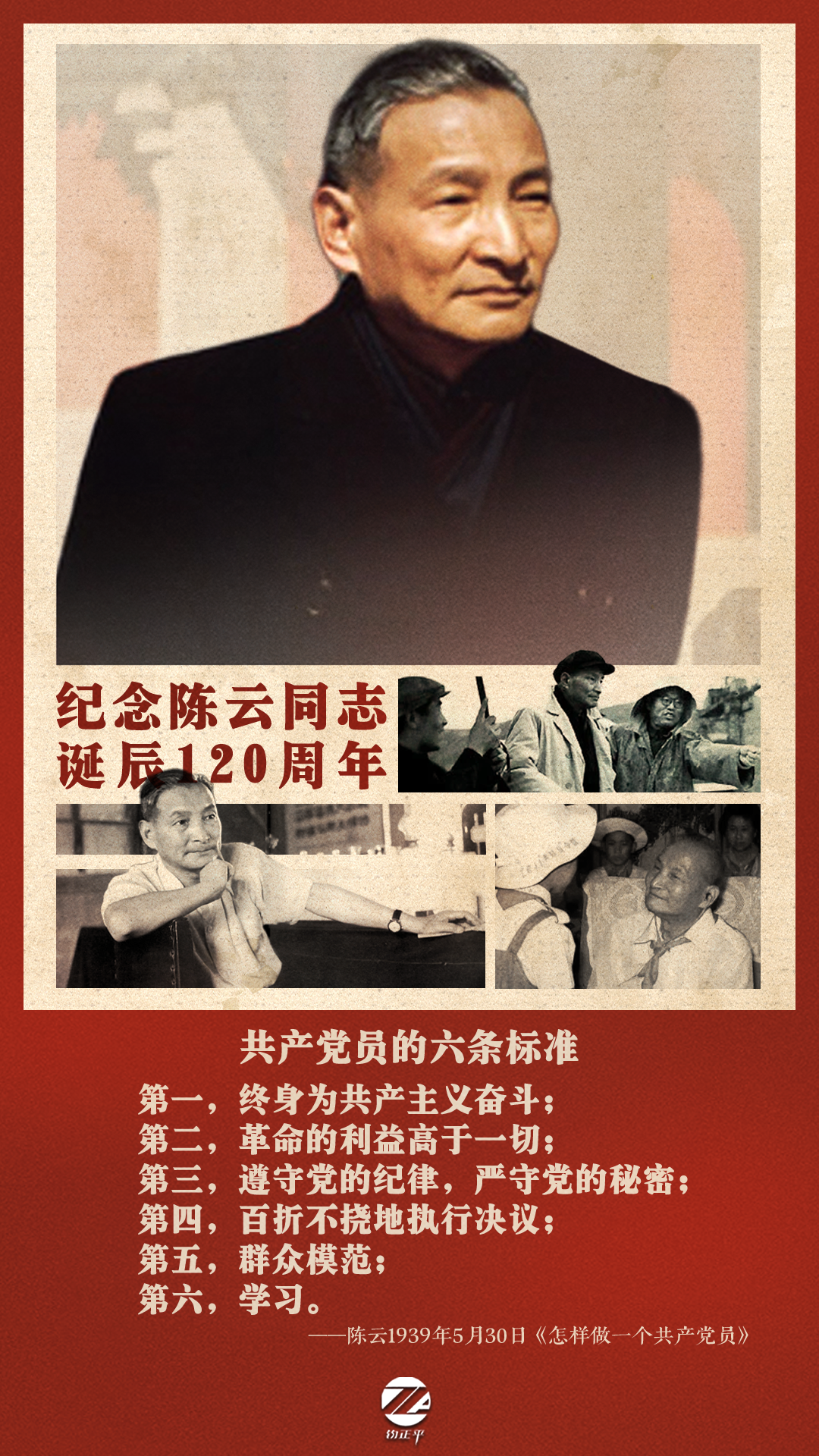 今日,恰逢陳雲同志誕辰120週年。我們紀念他為黨和人民立下的豐功偉績,紀念他的崇高風範與境界,同時時刻提醒自己——為共產主義奮鬥到底,就是要奮鬥到死;時刻追問自己——是否對人民盡了責任,是否無愧於中華民族的優秀子孫。