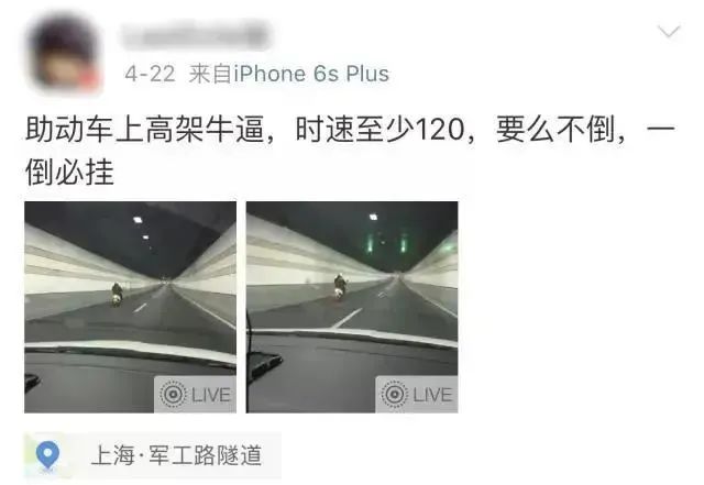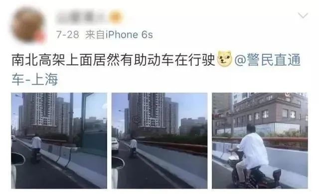 17年年底,甚至還有一輛違法載人的電瓶車,開上了上海的南北高架。