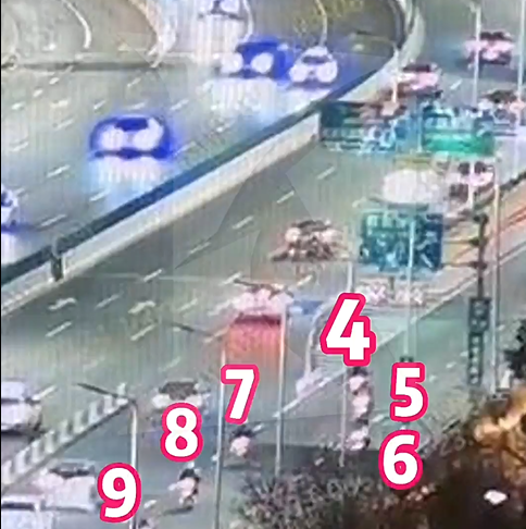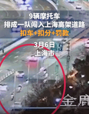 比如23年3月6日晚,9輛兩輪摩托車排成一隊闖入上海高架道路,在車流中穿梭。