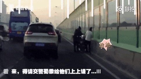 路過司機看到這電瓶車還半路拋錨在了高架上(大概是沒電了?),兩人只好無奈站在高架邊瑟瑟發抖。