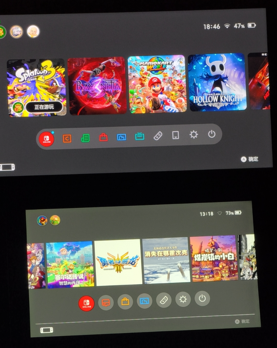 屏幕方面,對比舊版 NS 提升明顯,基本是吊打級別,大屏的顯示效果也非常出色,當然主要也是因為老款的屏幕過於拉跨。