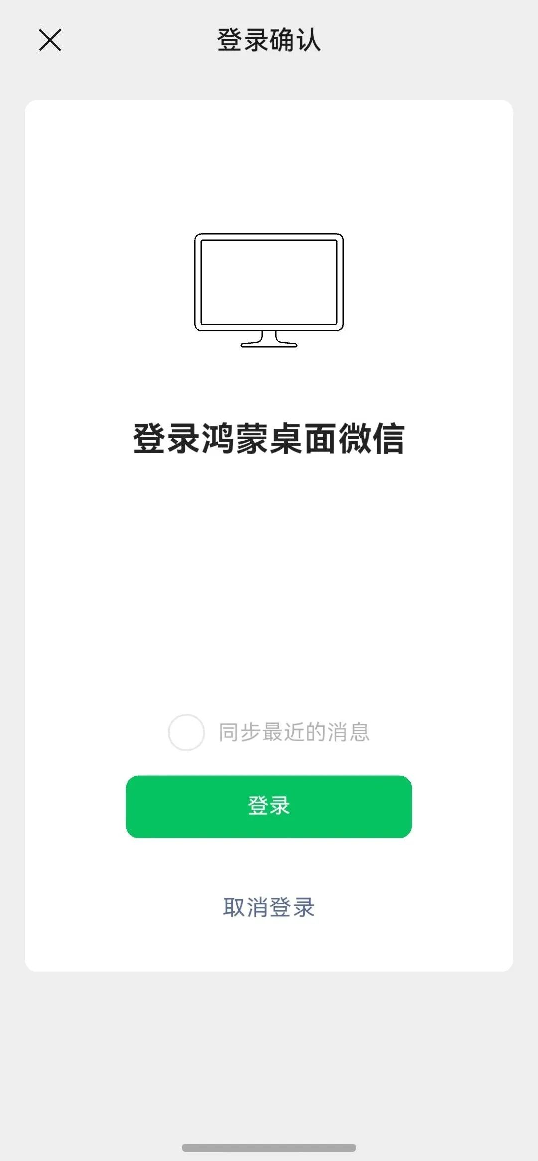 點開之後,是熟悉的掃碼登錄。是的,即使來到了鴻蒙電腦上,微信也只能通過手機掃碼登錄。意思就是説,電腦端的微信依舊離不開手機。