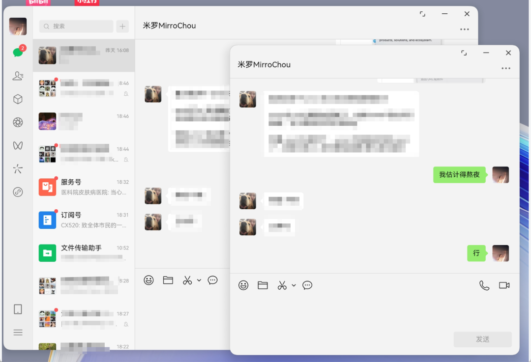 相比起之前HarmonyOS 手機端的內測版微信,電腦端的內測版本完成度真的非常的高,基本上可以替代 MacOS 和Windows****上的微信了。(文章中Mac端微信版本:AppStore 3.8.10,Windows 端微信版本:4.0.5.18)