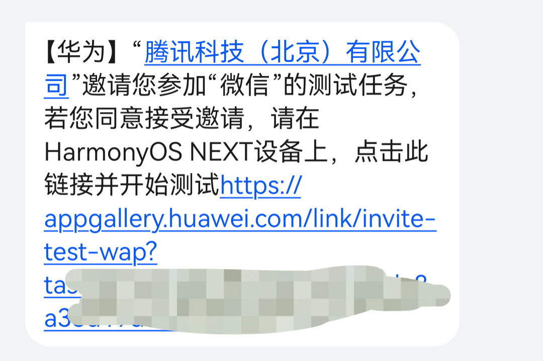 快的話一兩天,慢的話也就三四天,就會收到短信回覆,申請通過的短信內會附帶一個內測鏈接,點開鏈接後就可以安裝內測版的鴻蒙電腦端微信了。