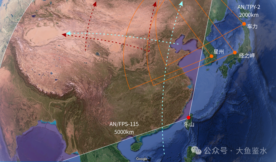美國陸軍在2006年和2014已經分別於日本青森縣車力和京都府經之岬部署了另外兩部獨立的AN/TPY-2雷達,均聯入美國的戰略反導體系。這4部高性能雷達不但覆蓋整個中國大陸,而且可以從最理想的垂直方向窺探大陸西北-東北向進行的各種陸基、海基彈道導彈試驗以及火箭發射全過程。