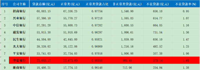 楊書劍前往華夏銀行擔綱一把手,顯然也有着“救火隊長”的意味,他所面臨的華夏銀行多項指標在9家A股股份行中處於墊底的情況。