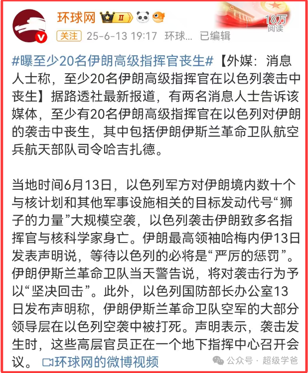 中東又有大瓜了。當地時間6月13日凌晨,以色列出動200架次戰機,再次成功偷襲伊朗,對伊朗的核設施、軍事基地、導彈發射場、軍事和政治領導人以及核科學家發起精準打擊。
