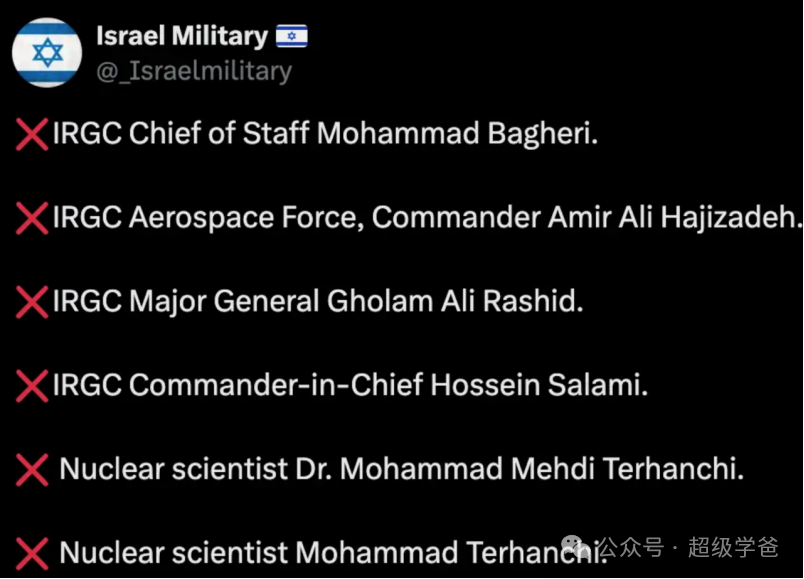 實話實説,以色列狙殺這些軍政要員和科學大咖,比菜市場殺雞都容易。為什麼呢?我猜不是他們不防,而是他們根本防不住,因為伊朗早已經被滲透得體無完膚了。