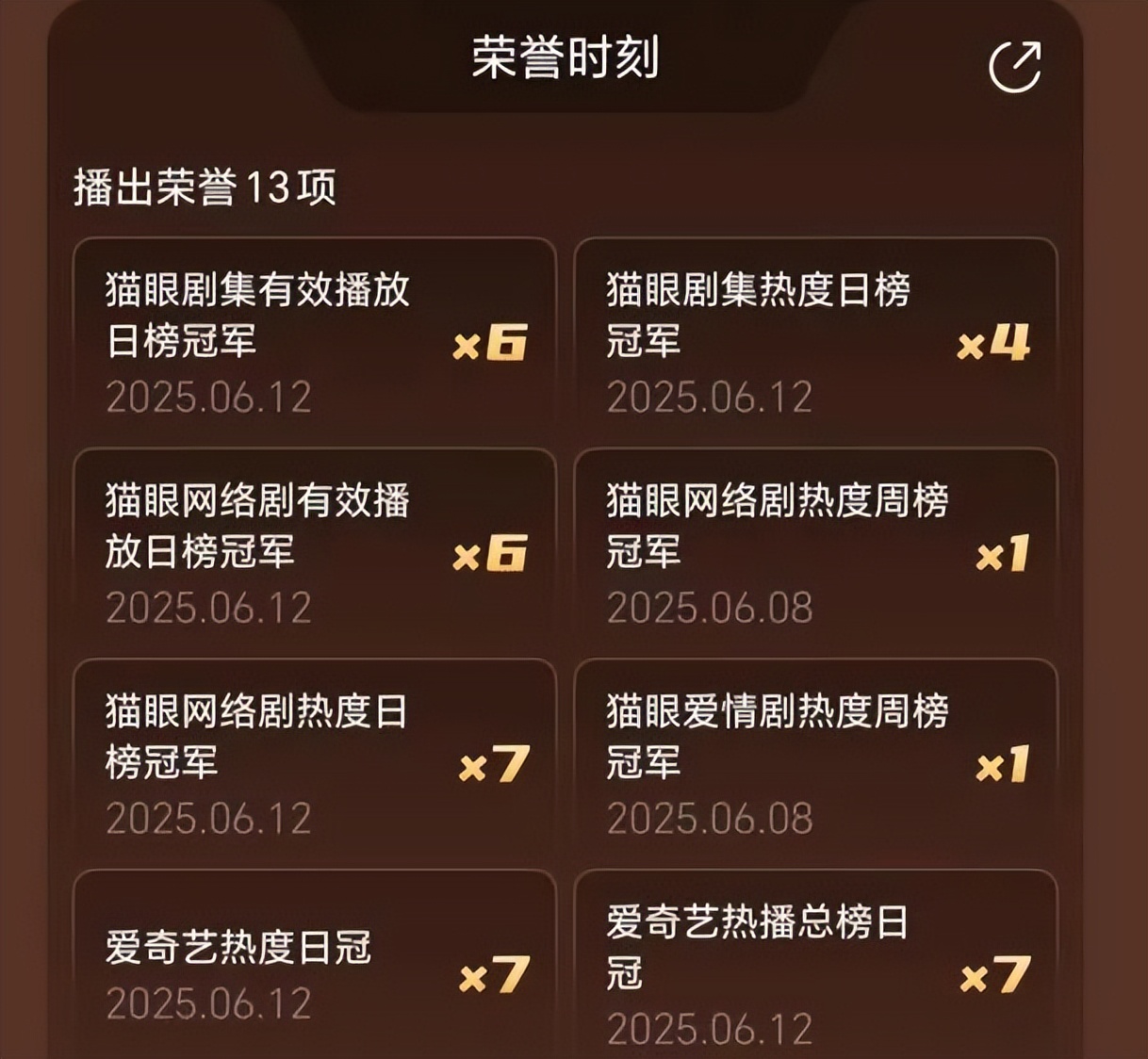 第三方數據方面,該劇同樣實現了多平台領跑。雲合市佔率16%+,評級S+;連續7天在貓眼成為網絡劇熱度日冠,在6月新劇中,集均播放量第一;德塔文景氣指數榜上,該劇則以破2的指數強勢登頂。