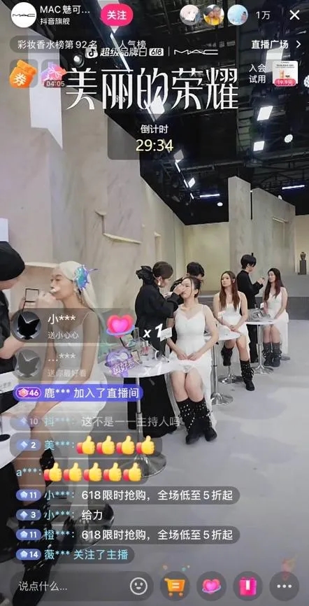 此次,抖音商城超級品牌日「美麗的榮耀」與MAC攜手首創「娛樂化測評」模式,將一場品牌直播升級為對決懸念拉滿的「美妝競技」,不僅糅合了品牌對彩妝趨勢的深刻理解、傳遞出品牌的專業權威性,更以兼具視覺衝擊力與互動趣味性的創意形式,極大提高品牌直播間的觀看人數、活躍度和用户停留時長。