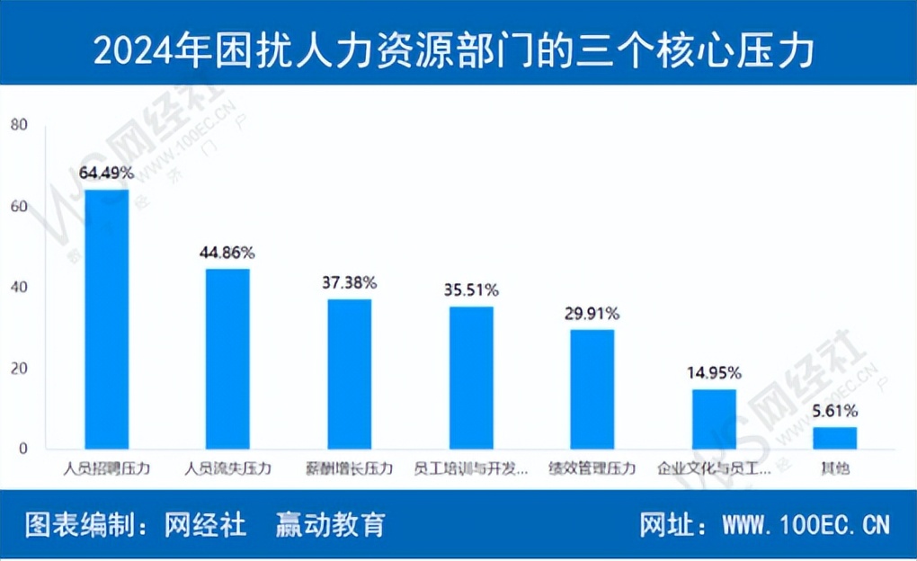報告顯示,從流失率看,各企業在2024年的員工流失率區間段中,20%-30%區間段佔比為18.69%,2023年22%。10%-20%,佔比32.71%,2023年達40%。10%以下區間為33.64%,2023年為26%。表明經濟轉型期,員工更珍惜當下的工作機會,主動離職率下降。