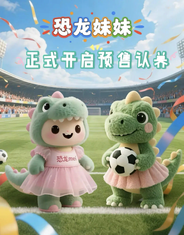恐龍妹有兩個形象,活力四射的“足球霸王龍”與甜美可人的“蓬裙恐龍妹”,精準捕捉不同消費羣體的審美偏好。