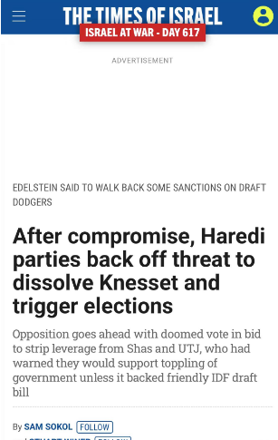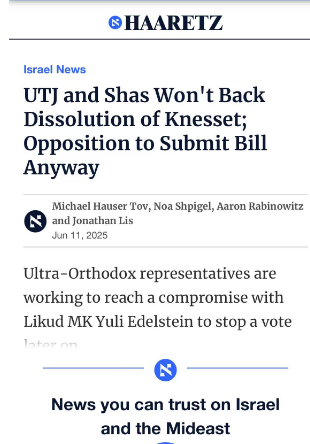 從以色列自身角度看,內塔尼亞胡通過這次空襲再次為自己政治生命的延續注入獻血。關注以色列政治的讀者一定知道,事實上由於是否對極端正統派徵兵的問題上,本屆內塔尼亞胡政府幾乎瀕臨崩潰。這才是最近以色列新聞都頭條頭版。
