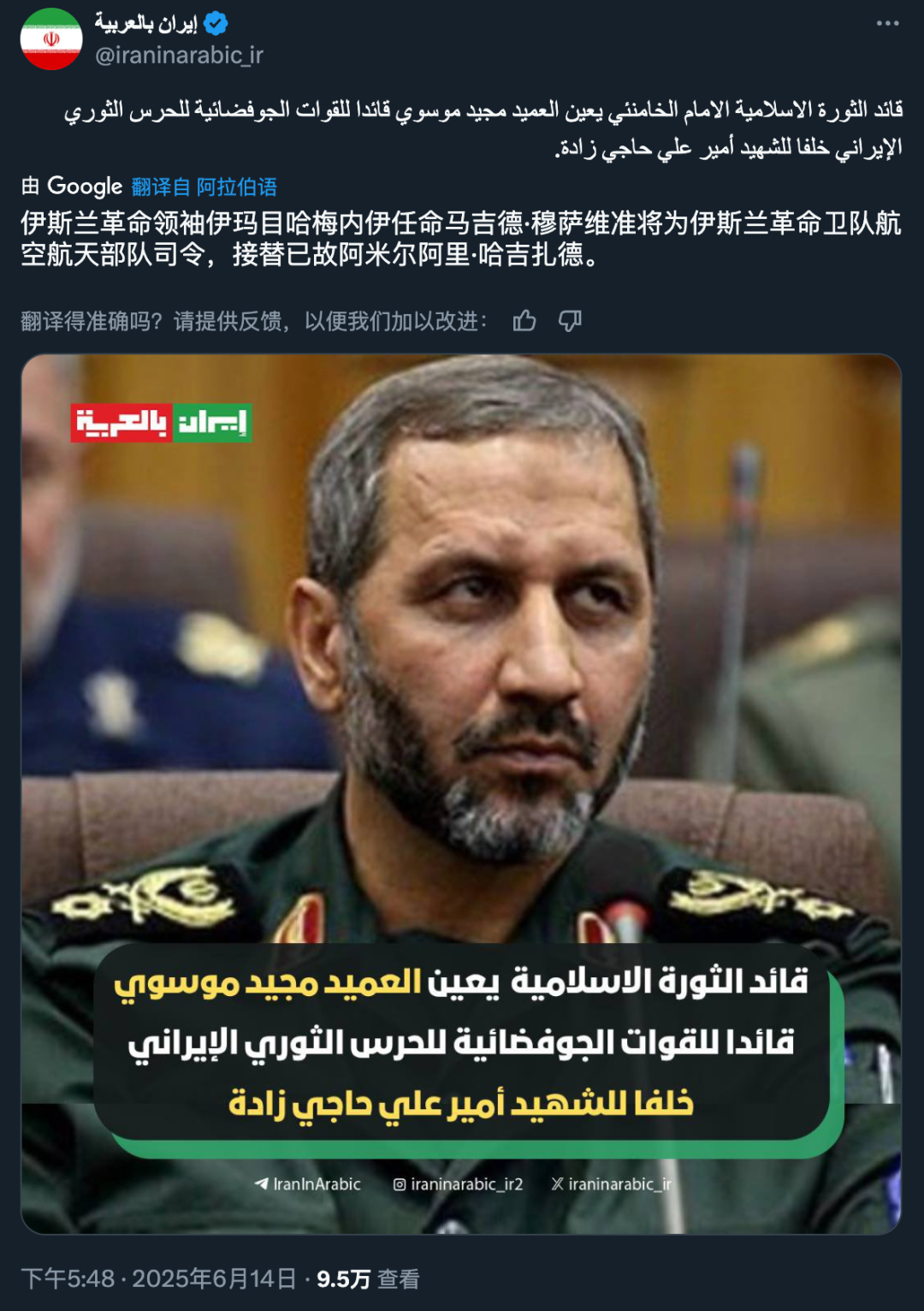 伊朗武裝部隊,革命衞隊的指揮鏈條在經過短暫的停頓之後,在13日白天就恢復了運作,所有遭到斬首的高級指揮員崗位都迅速補位並恢復了工作。13日晝間和14日拂曉,伊朗革命衞隊航天部隊和地導系統都開始參與作戰,以色列空軍戰機在伊朗上空的行動有所減弱。這一方面證明伊朗武裝力量不是外界想象的那麼不堪一擊,另一方面則證明,北約國家迷信的所謂斬首行動其實造成的影響也沒有多大。