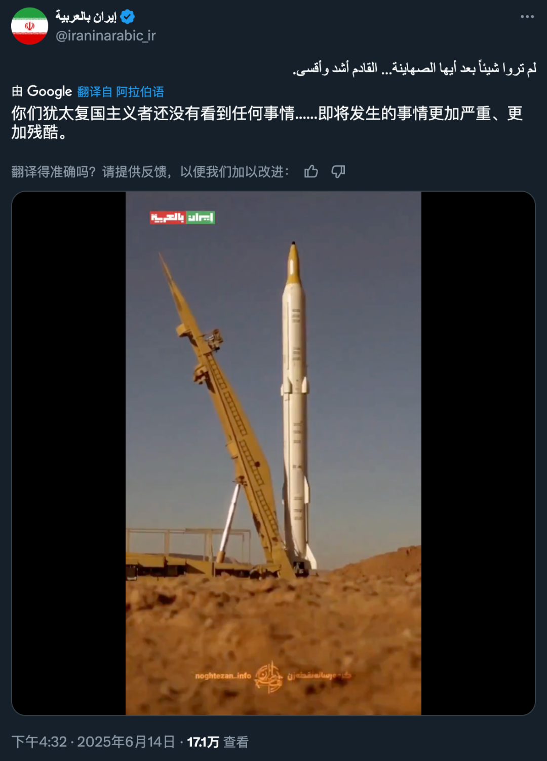 伊朗西部多部防空雷達、地導系統在以色列空軍、地面滲透小組的聯合空地打擊之下遭重,福爾多、納坦茲等地的核設施遭到以色列軍隊反覆轟炸,大不里士、設拉子等地的導彈基地也遭到了以色列空軍的襲擊,有彈道導彈發射車被摧毀,如此巨大的損失不由得讓人懷疑,伊朗是否還有反擊能力。