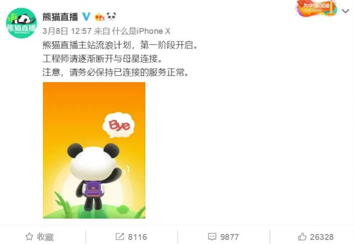 先是小平台開始陸續倒閉,接着中腰部也扛不住了,即便是曾風光無限的熊貓直播,也在 2019 年宣告退場 ↓ ↓
