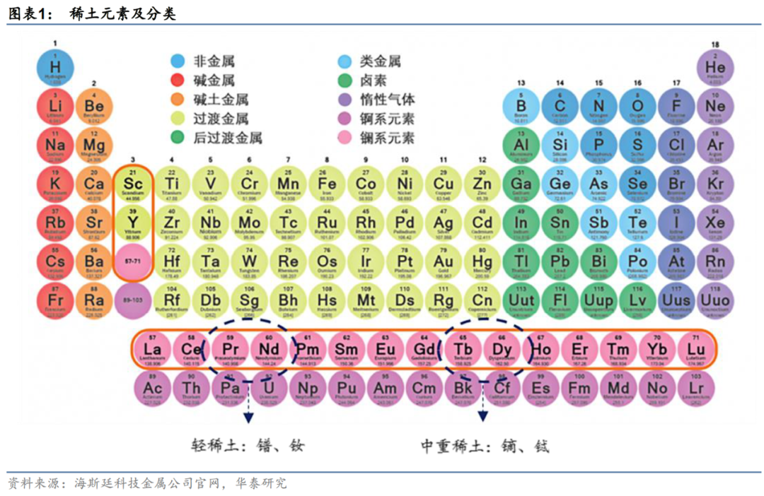 02 格局打開作為現代工業體系中最炙手可熱的金屬元素,稀土是化學元素週期表中鈧、釔以及鑭系共17種元素的統稱,由於其各自具備優異的磁、光、電特性,被廣泛應用在各類永磁、催化、發光和超導材料的研製上,是當代航空航天、電子信息、能源、交通、醫療領域不可或缺的存在。