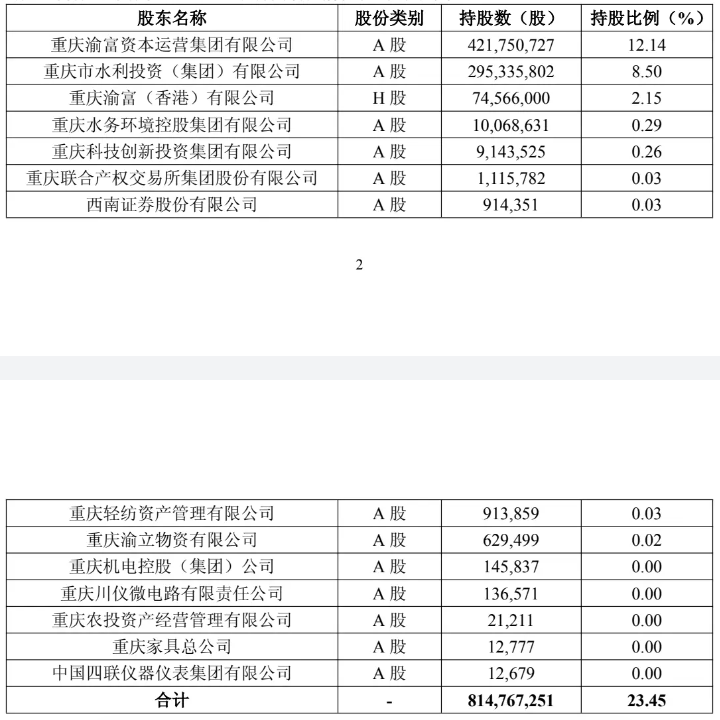 值得注意的是,本次股權變動並未導致重慶銀行第一大股東發生變化。