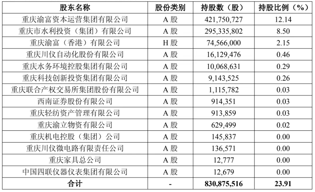 此前,重慶銀行也發生過多次股權變更,比如:2025年3月,重慶市水利投資(集團)有限公司(簡稱“水投集團”)成為渝富資本的一致行動人,前者持有重慶銀行8.50%的股份,其背後是重慶市國資委進行的國有股權無償劃轉。