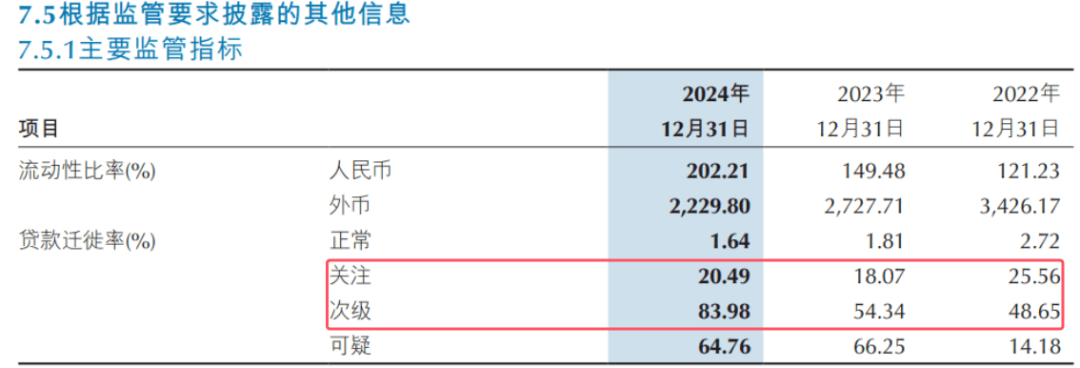 同時,重慶銀行2024年末關注類、次級類貸款遷徙率均呈現增長態勢,表明今後中長期逾期貸款逐步變為不良貸款的可能性較大,進而增加不良核銷風險。